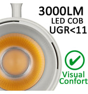 The PARIS 30W LED Track Light White combines modern design, precision optics, and professional performance to deliver exceptional lighting quality in commercial and architectural spaces. Equipped with a Bridgelux COB chip (110 lm/W) and a 24° beam angle, it provides powerful, focused illumination with UGR11 for glare-free visual comfort.