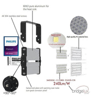 240W LED Floodlight PHILIPS Xitanium STADIUM MATRIX Bridgelux Chip - Philips Driver 160Lm/w 5000K