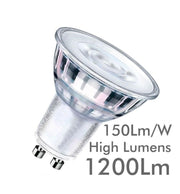 8W HIGH LUMINOSITY DIMMABLE LED GU10 Bulb - Glass - 24º 5700K